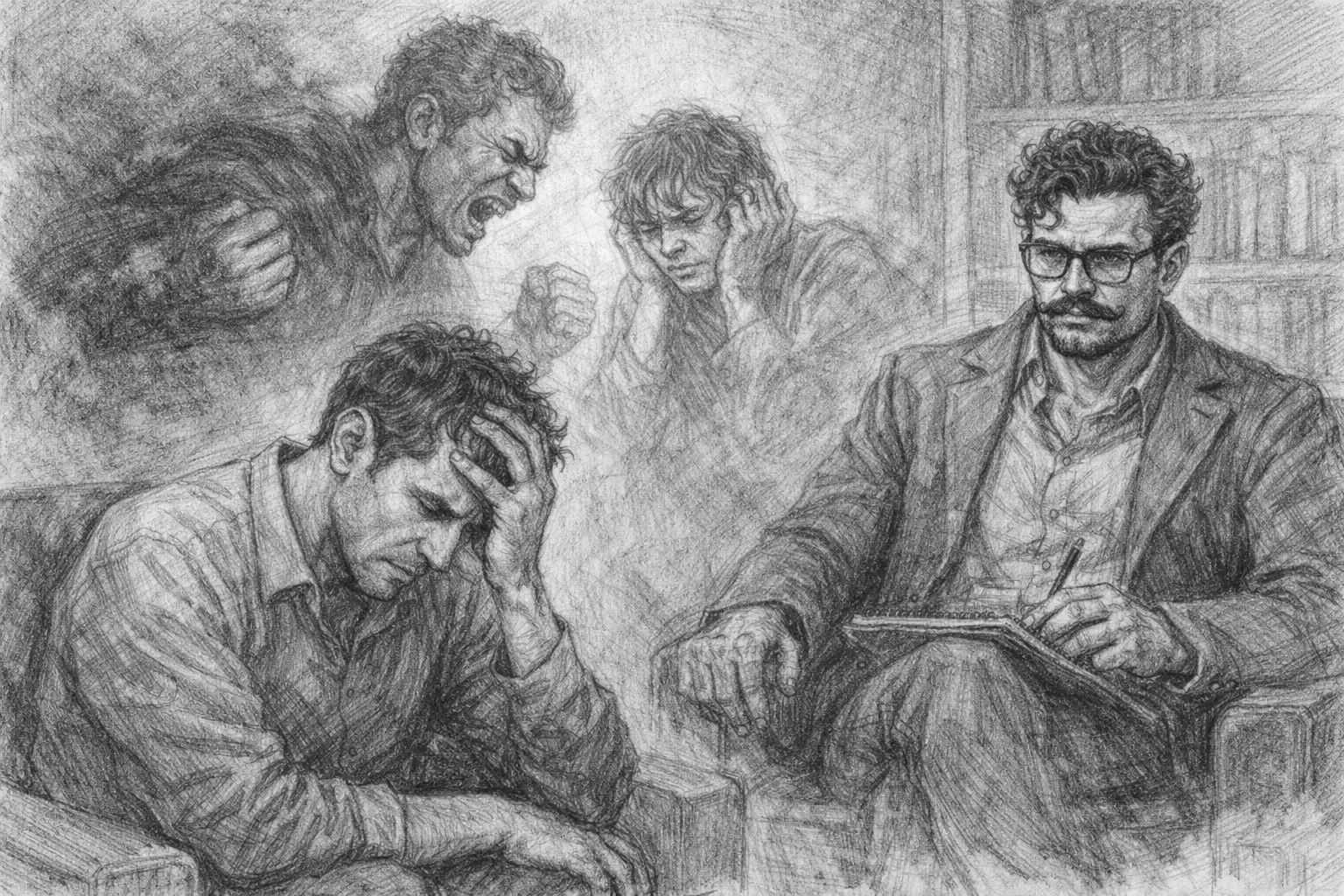 По дороге на встречу вернулись сомнения по поводу целесообразности в этих встречах. Внутри буйствовали раздражение и агрессия. Рафаэль сильно нервничал, но не понимал причину своего напряжения. Он чувствовал, как кровь кипит в жилах и пульсирует в висках, ему хотелось с кем-нибудь подраться. Он представлял себе, как избивал бы человека. Этот гнев как будто расплавлял его изнутри и в какой-то момент он неожиданно для себя почувствовал, как расщепляется надвое.